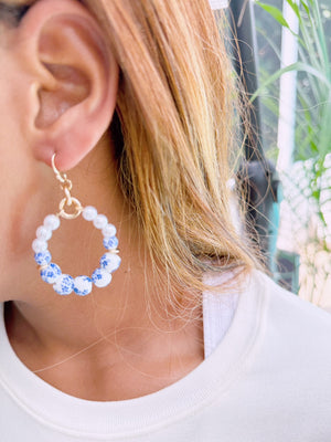 These hand-painted ceramic hoops are where vintage charm meets modern color play. Featuring delicate pink and blue florals on smooth ceramic, each pair brings an effortless pop to your look—whether you’re brunching, beaching, or just being your fabulous self.