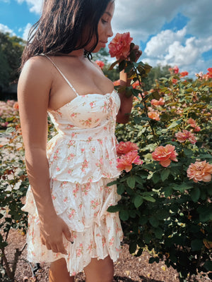 Step into summer with this stunning Floral Front Lace-Up Ruffle Tiered Mini Dress. Featuring a flattering sweetheart neckline and adjustable spaghetti straps, this dress offers a perfect blend of comfort and style. The back smocking ensures a flexible, form-hugging fit, while the front lace-up detail adds a trendy, corset-inspired touch.