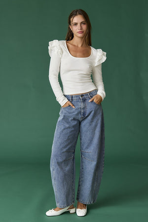 Flaunt your feminine side with our Ruffled Long Sleeve Top. This playful top features charming ruffles that add a touch of elegance and style to any outfit. With its comfortable long sleeves, this top is perfect for any occasion and will make you stand out from the crowd. Get ready to turn heads!